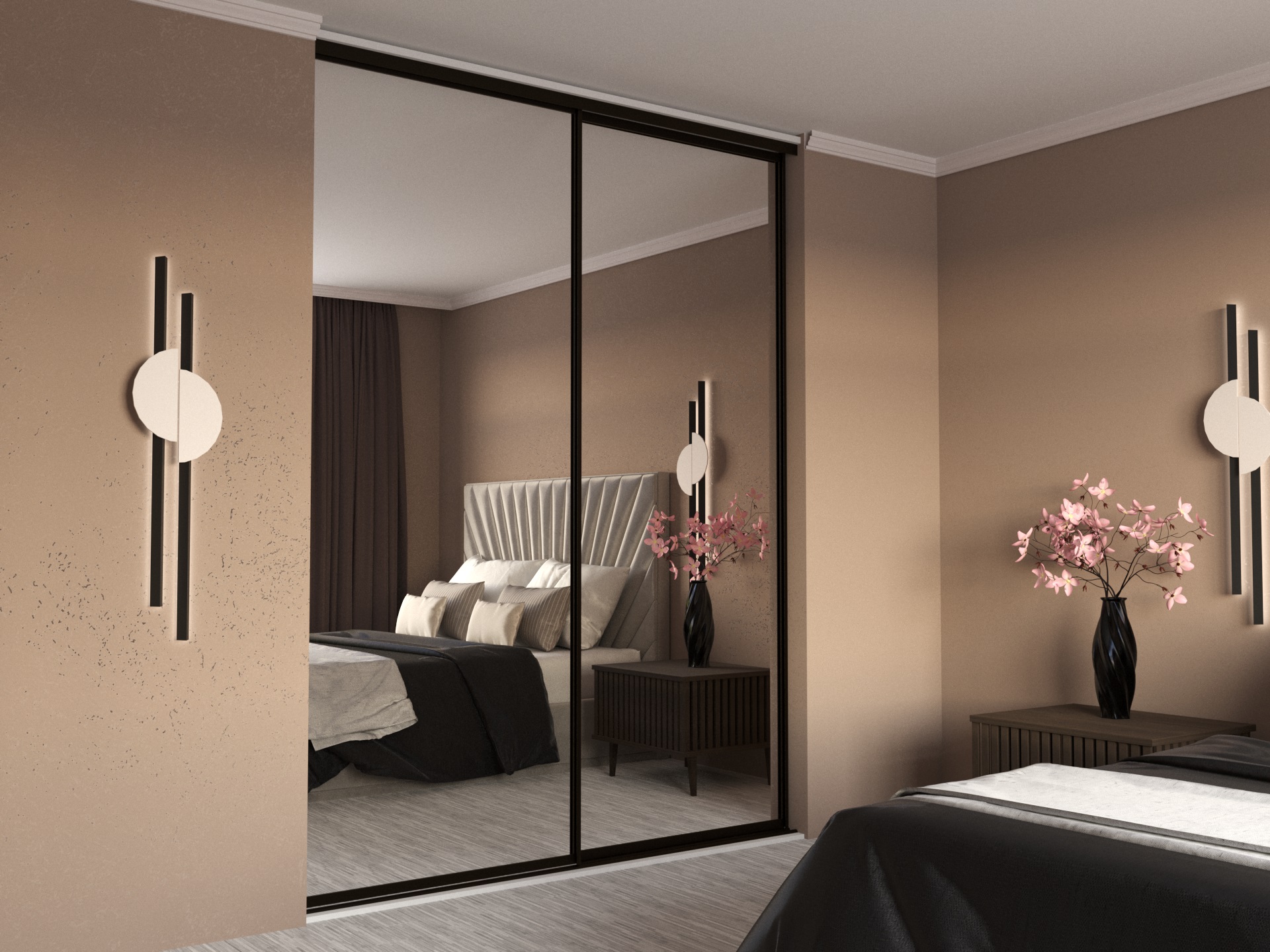 - Визуальное увеличение объёма. Зеркальные и стеклянные двери делают комнату светлее и просторнее.
