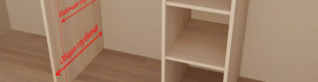 - Полезное пространство Важно понимать, что из общей глубины шкафа около 100 мм занимает система раздвижных дверей. Поэтому при планировании учитывайте, что реальное пространство для хранения будет меньше общей глубины.