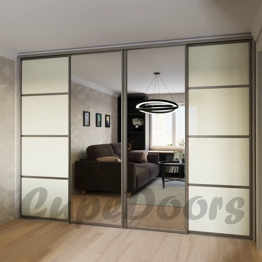 В последние годы очень большую популярность приобрело использование в изготовлении мебели, глянцевые, светоотражающие поверхности изготовленные из крашеного стекла под названием Lacobel (Лакобель). Фирма «CupeDoors» уже несколько лет применяет их в производстве раздвижных дверей для шкафа купе или гардеробной комнаты. Более того, в производстве мы используем не только целые полотна но и различные комбинации например из стекла и ЛДСП или стекла и зеркальных поверхностей. Что значительно удешевляет, но при этом не оставляет равнодушным своих будущих владельцев.