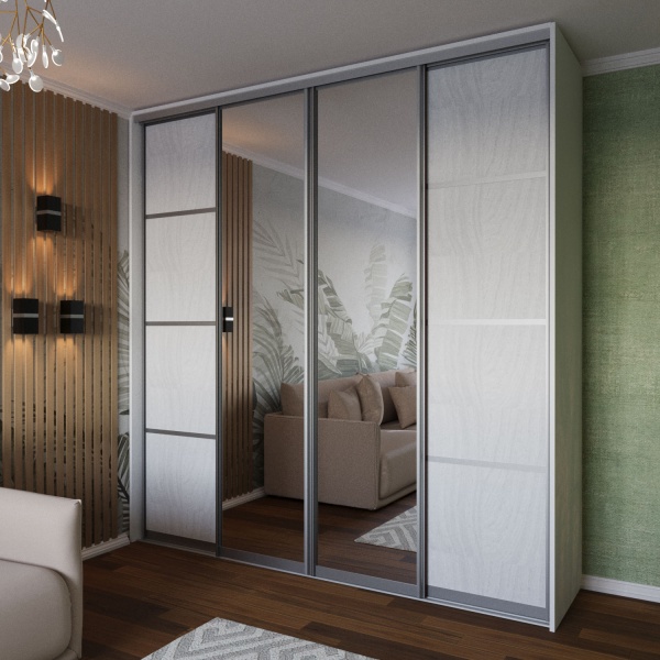 Шкаф-купе «ЛДСП с делителями/Зеркало» четырехдверный